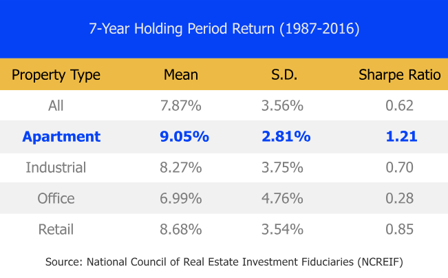 Multifamily investments have historically out performed other real estate classes